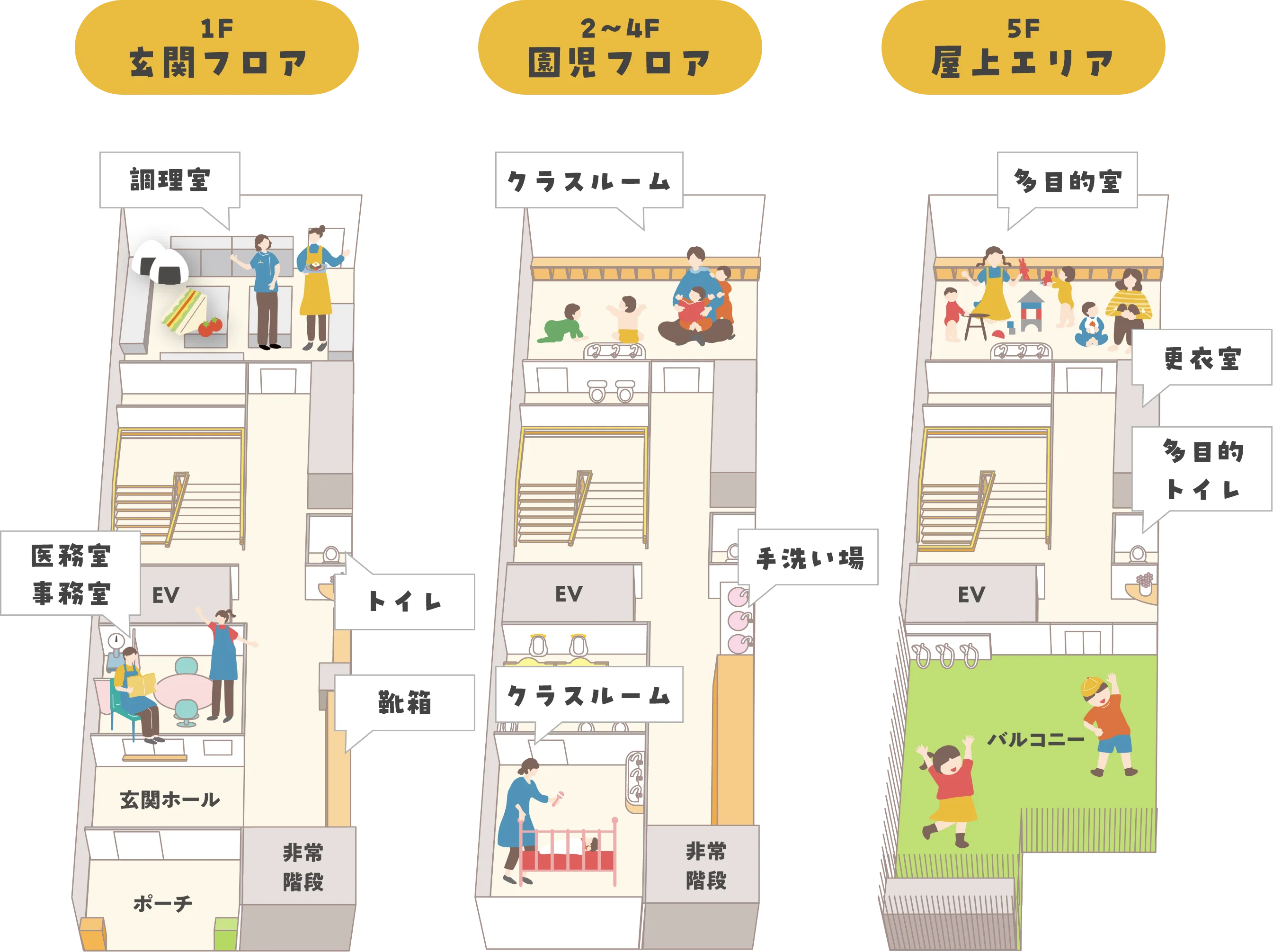 お歌や散歩、リズム運動、描画、プログラムや