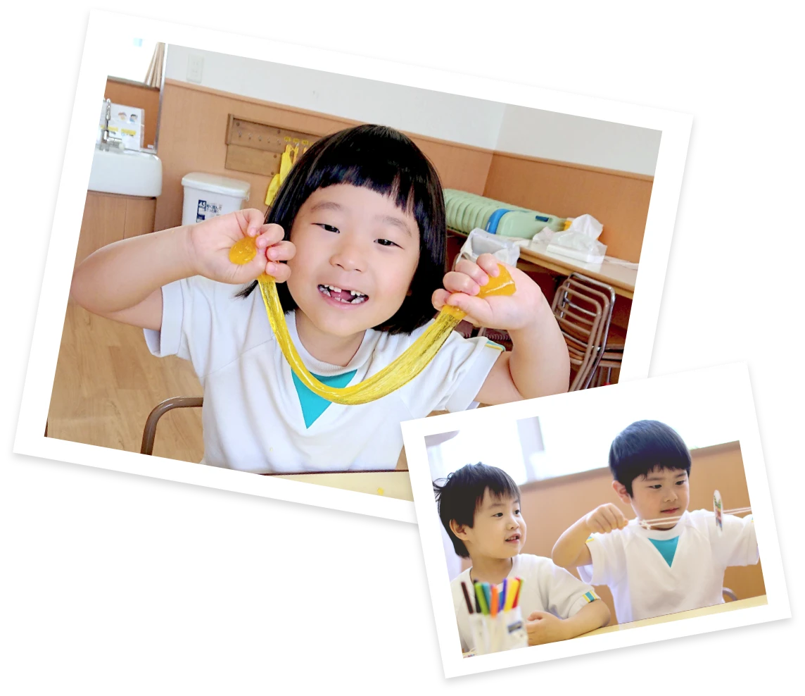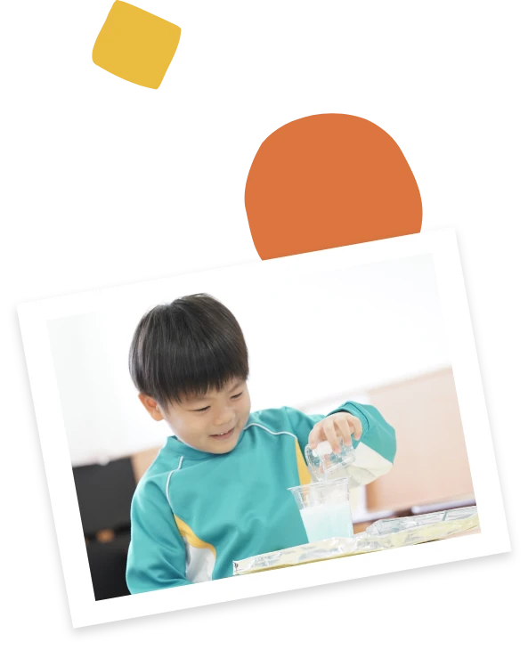 「どうして雲は白いの?」など、身近な科学をテーマに自分で見て触れて試してみる、成功あり、失敗ありの大人気のカリキュラムです。実験や工作、遊びを通して、好奇心がムクムクふくらみます。